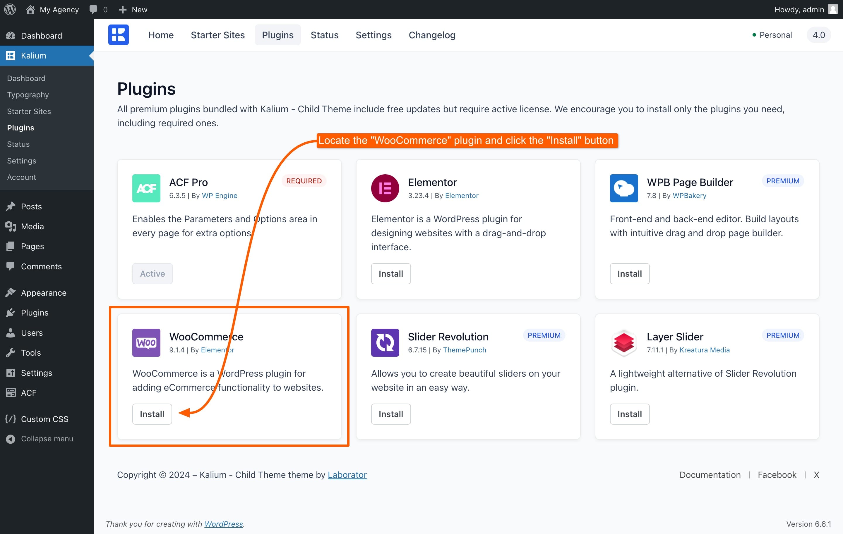 1. Go to **Kalium -> Plugins**: In your WordPress dashboard.